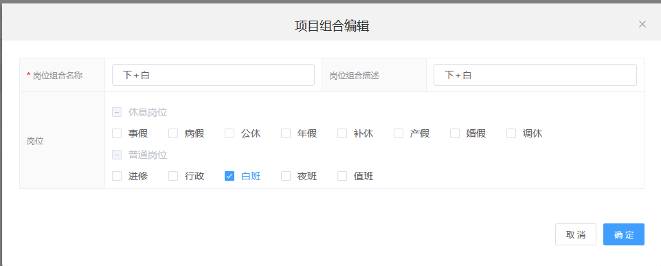 主要用于查询和新增岗位组合名称,多个岗位设置为一个组合,排班人员排班时只需点击组合,可一次性排多个岗位。