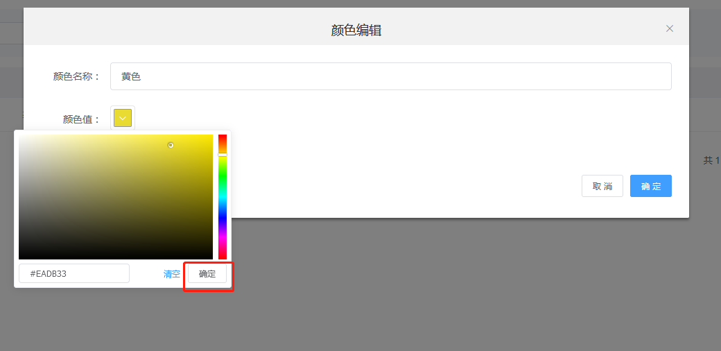 - 新增:点击新增可以输入颜色名称,并在颜色值里面找到相对应的颜色,然后点击确定.