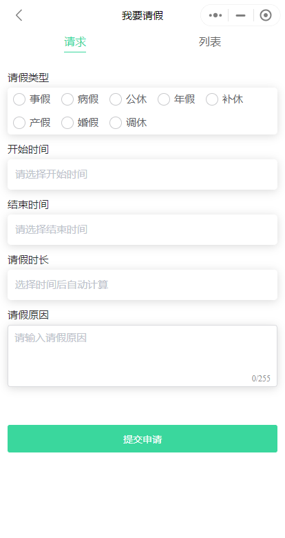 - 加班原因:输入加班原因,方便审核人员查看与审批.