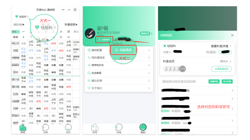 功能准确说应该叫“切换角色”,该功能主要满足用户成在于多个科室或拥有多个角色的情况下,能实现快速切换,如果您是医院管理员,还可以快速切换到医院管理员专属页面。